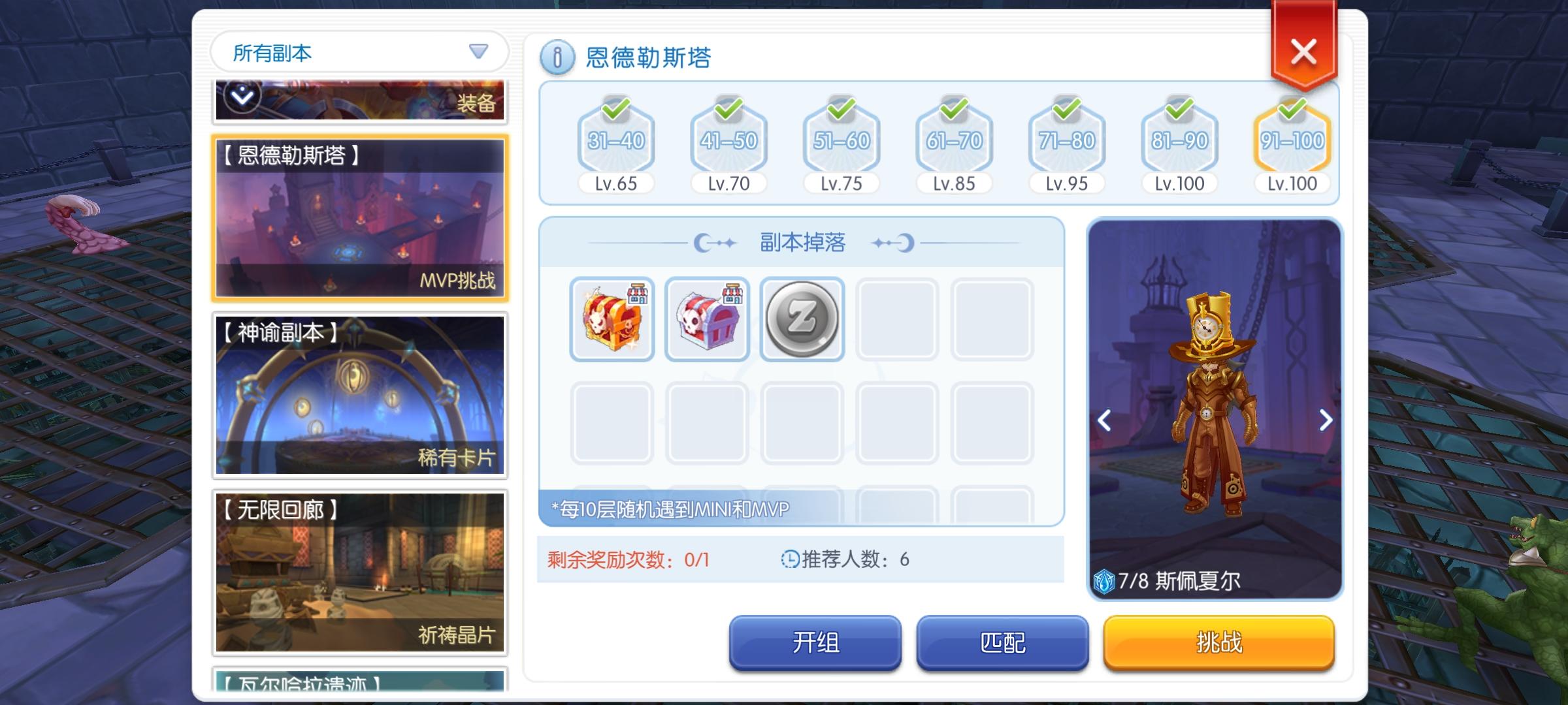 不容易啊也是混过去了100,要点就是多切世界线去看最后一层的几个BOSS。要是射手狼外婆这种建议切世界线找一条好打的,本人主玩贤者副职业法师。还是法师爬塔好混,一套这样的装备都能过100。陨石可以等级低但是火柱一定要点满。