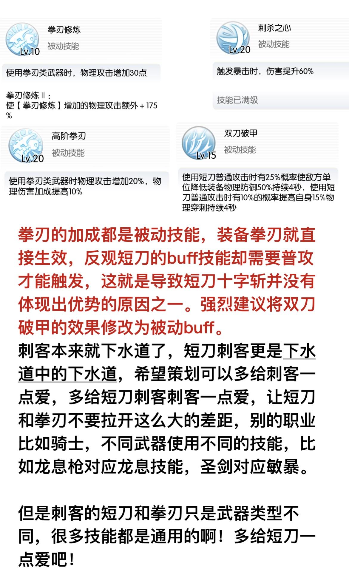 用数据说话、请愿策划多关注一下短刀刺客