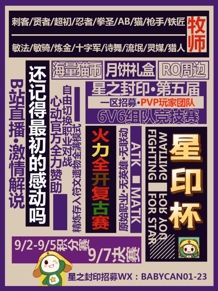 在仙境传说的世界里,一场前所未有的对决即将拉开序幕!麻辣十三香小龙虾与冰镇熟醉小龙虾的传说之争,将由你来决定胜负。选择麻十三或冰熟醉的阵营,展现你的战斗技巧,与你的战友一起,为小龙虾之名而战! ●赛事日程及报名方式 报名时间:即刻起至9月29日22:00队长抽人时间:10月3日21:00小组赛时间:10月7日21:00车轮战和决赛时间:10月13日21:40*报名请见微信报名小程序,