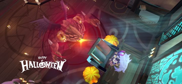 作为万圣节的女王,海拉从来不觉得自己会输给什么新晋小魔王!!比比谁才是万圣节代言人吧!!海拉:欢迎来到海拉的魔女小镇梦罗克:我可不是来玩的。海拉:我们换个地方决斗。梦罗克:走啊!我可不怕你!梦罗克:干嘛?就这里吗?来吧! 进入战斗模式!梦罗克:坐在这里看的风景居然不一样了。海拉:带你去看看更有趣的。梦罗克:确实不错啊!海拉:这可是万圣节期间的特殊礼物!梦罗克:连幽灵都那