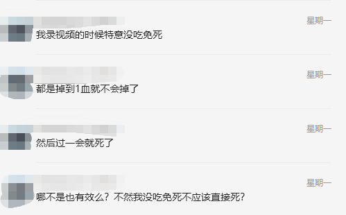 真的不知道这位女杠精还能想出什么刁钻的角度可以抬,当时让好事者转发给她的原视频第4秒明显可以看到免死被触发(图2),但杠精选择性失明就是看不到···并且在抬杠贴中口口声声说这可不是触发免死的血量,而是我的挂件硬抗住了混合爆炸!说到这,我们不妨回顾一下这位女杠精抬我的心路历程:此前我们从未接触,互不认识,并未结仇结缘,只因某好事者转发截图结下孽缘。仙山梦谷会长大人全程皆从自我理解角度出发,单方