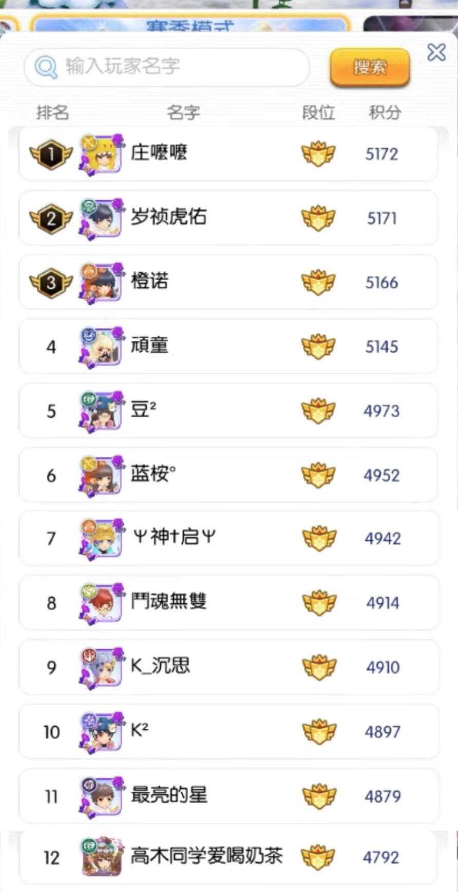 二区梦想天空66组队竞技赛S17排名列表(前200名)简析