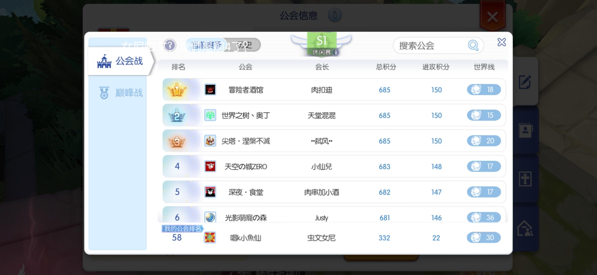 大家好,我是50级超初萌新蛋仔!🤔🤔人生中的第一次公会战(话说我才进公会第二天)当然作为只有50级的我,只能是充当炮灰1号,给公会大佬扣666~声援~加油↖(^ω^)↗充当公会必须得存在的职业(鼓励师)所以毫无疑问是得拿下,功劳当然是会里大佬们的努力(当然还有我的鼓励)最后附上我们家庭合照!(当然C位肯定是我)😎😎