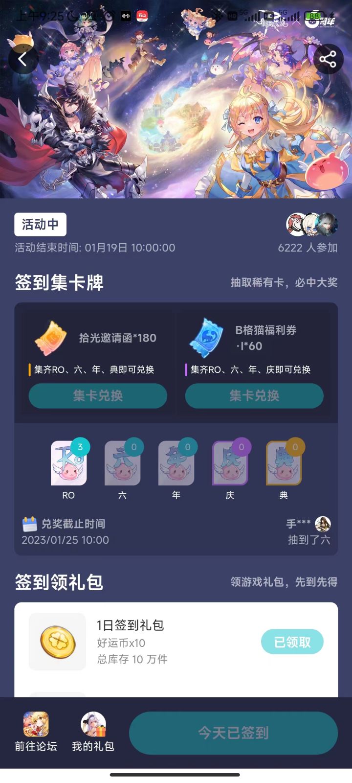 RO六周年庆典与2023年新年还有两周就要到来啦,在这双喜临门之际,卡普拉给大家带来六周年签到领奖活动,在这也给各位冒险者们拜个早年~📌活动时间:1月9日 10:00 ~ 1月19日 10:00📌参与方式:点击论坛页【六周年签到】活动跳转至签到板块即可。» 传送门:» 活动期间在活动页中点击【立即签到】按钮进行签到,活动期间累计签到满对应天数即可获得相应奖励兑换码!📌奖励一览:Ti