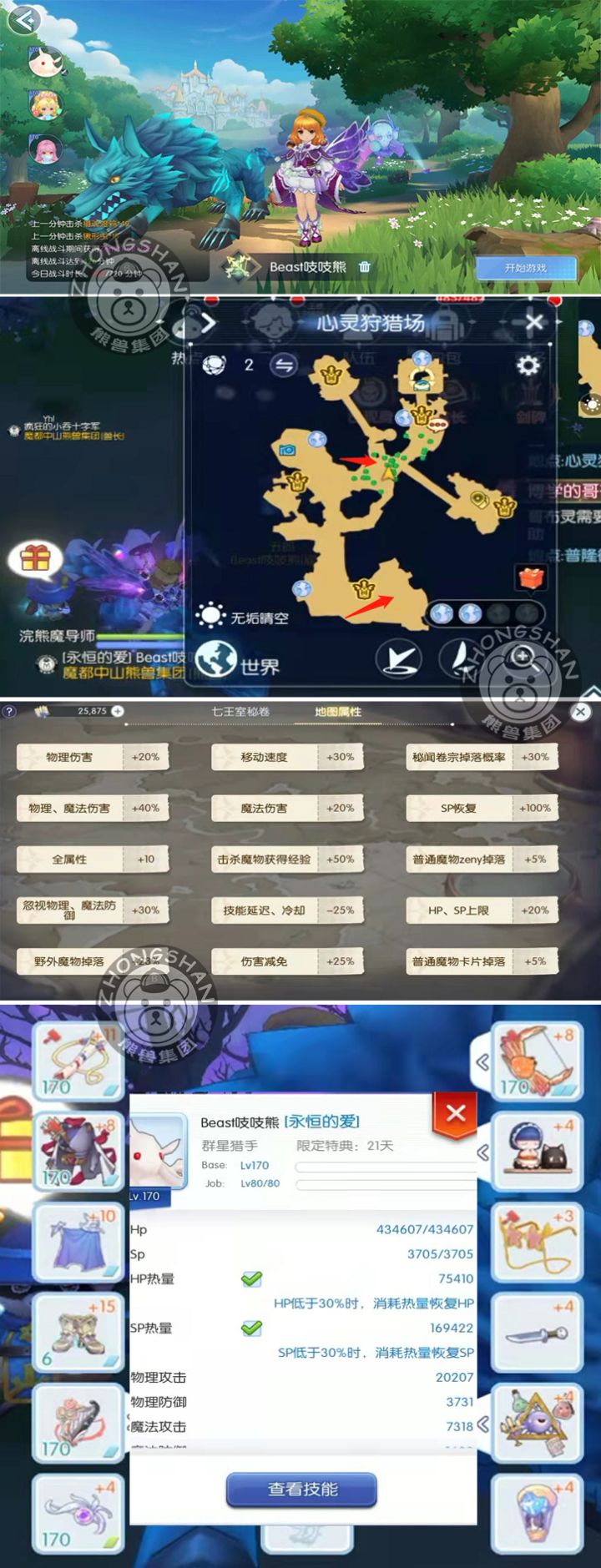 很多人都抱怨挂机收入低,无法存钱,这个帖子希望可以帮到大家。我这套装备算是比较烂的了。地图是甜梦原野,12点方向挂机,前提云海的任务全部做完,所有建筑解锁完! 这个是单人打怪,不是组队的。装备可以多项选择,我多个号装备都不一样,主要都是核心装备我只解锁了前置属性的,后面都没有解锁,详细可以看上面链接攻略4转技能我也没怎么加,只加了有用的。挂机的技能:流星我习惯放在外面,大家可以放在备战里