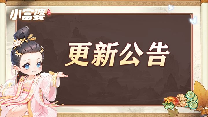 亲爱的小富婆们: 为了给大家带来更好的游戏体验,《小富婆》将于2025年5月8日(周四)11:00-12:00对全服进行停服更新,会根据实际进度提早或推迟开服时间,请各位小富婆们互相转告,并留意开服时间,以免造成不必要的损失。对于停服更新期间给大家带来的不便,我们深表歉意。待到更新完毕后,各位小富婆会收到我们准备的一份小礼物,敬请留意。感谢大家的理解和配合!✦更新内容✦1.新增活动“家族烤地