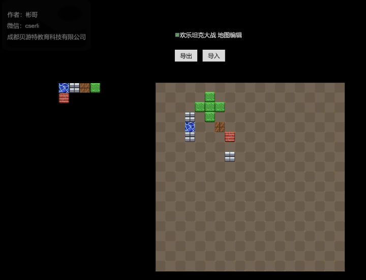 下面视频是游戏中得录制视频:视频中有很多的元素,最为主要的是每个战斗场景的地图,那么地图是怎么生成的,是不是前端程序自己拼接的?答案肯定是否定的,游戏目前看着虽然不大,但是我们关卡模式有100关,后续还会增加!如果使用随机或者前端程序来做还是比较麻烦的,因此我们自己开发了一套地图编辑系统,网址:地图编辑器的主页:一共目前5个场景,我们选取其中一个游戏场景,如下:生成后,点击导出:{"_ma