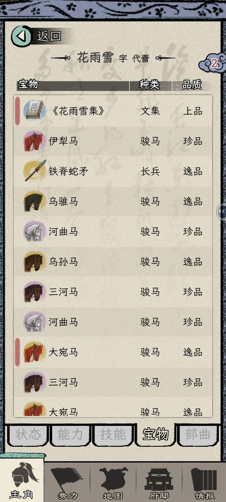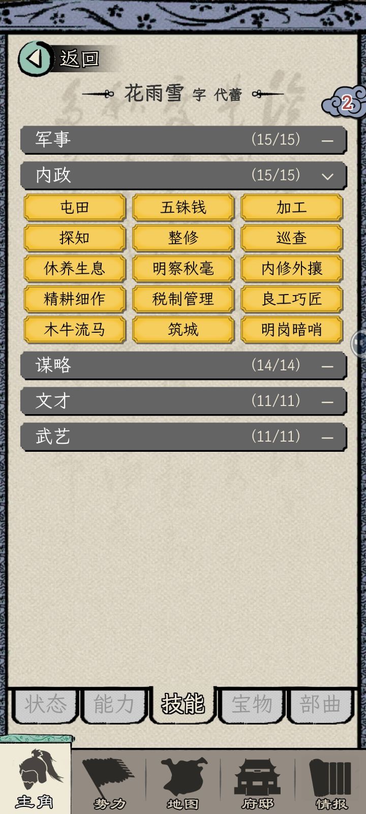 本帖基于大佬-我讨厌zb的世界玩法分享:首先开局十八路诸侯,将门,看广告吃属性丹,势力选袁术,之前看有人说刘表但是我有个档20岁了还没当上去,综合我多个档重开的经历,考虑还是袁术比较稳,17-20岁稳定太守。然后就可以愉快的打工了,这个玩法思路是不做装备不需要发展同僚的,当了太守以后除了君主袁术不能给你打工,其余人包括剧情杀的吕布都能收过来给你打工,只要你开局够快就可以直接去打掉他,我这个号是