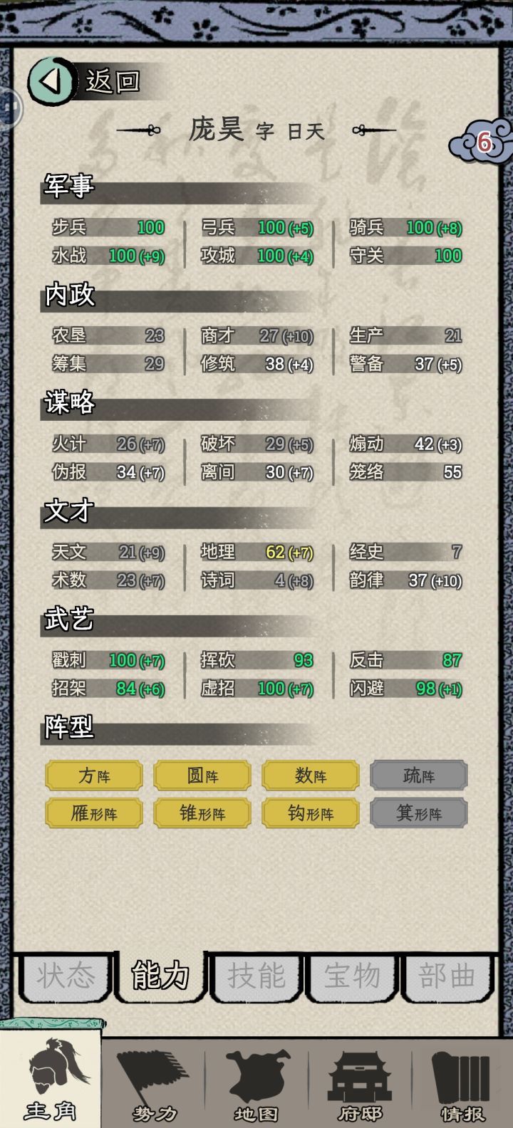 写在最前:成为太守后的容错率将会大大提高,玩家可以尽情探索自由发挥,看广告需求也大大降低。其实不太需要攻略,我只简单聊聊发展思路、和一些便携的游戏机制。【基本思路】不断扩张!从太守第一年就开始攻城略地!如果地图上还有无主城池,就先去占领,没有就去攻打附近兵力相当的城池。然后下一年,让你已经攻下的城池,也去攻打其他城池,这样滚雪球,你手里的城越多,你的武将就越多,你下一年能打的城池就越多。【小技