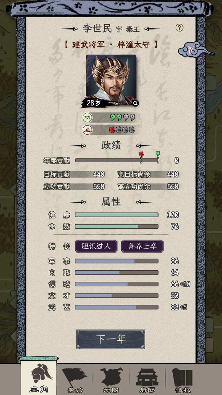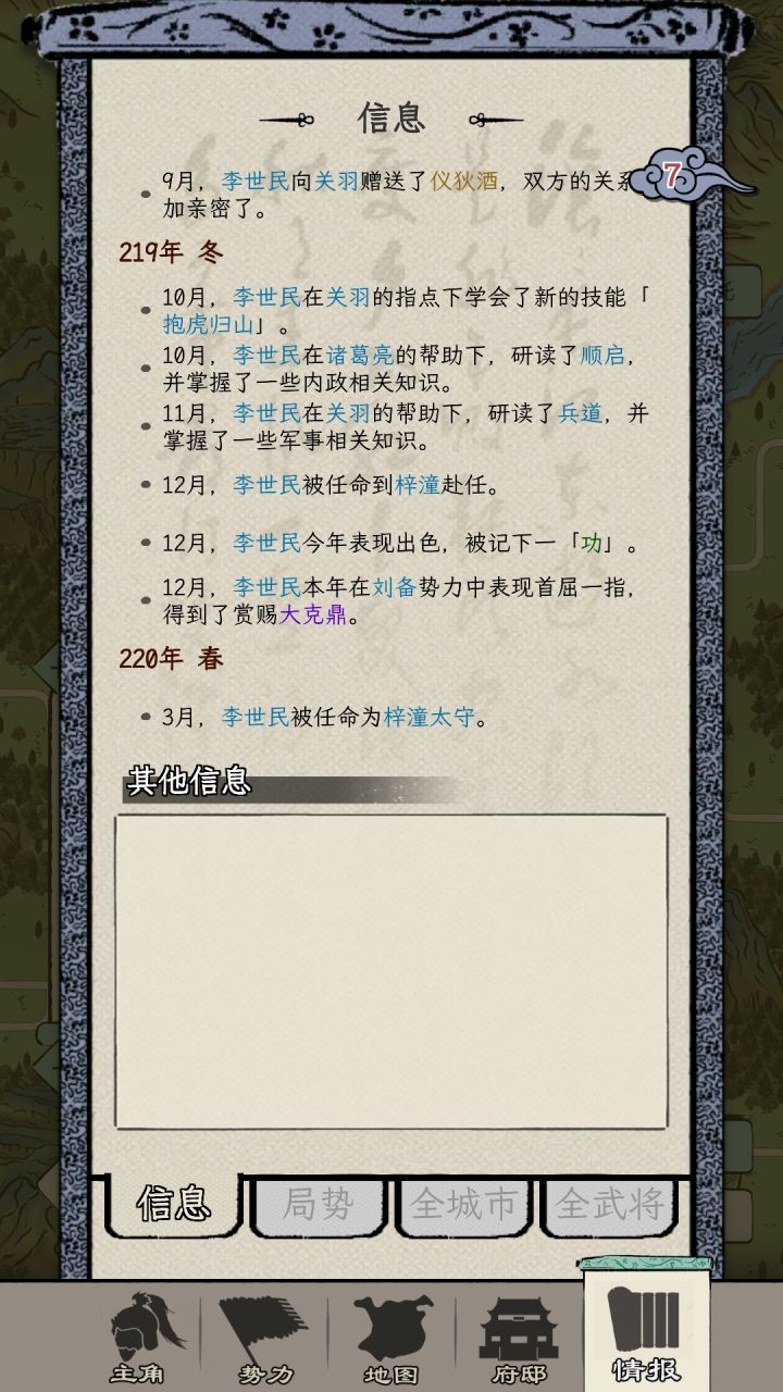 之前看了篇攻略 试着思路玩了下 挺好玩的 前期就是看广告吃十个丹药 做任务 没有政令了 看个广告最好每年都是功 前两年就没事喝个酒 增加亲密度 再就是看书 后面亲密度高了 曹操会陪读然后第二年开始要巡城 它会给你材料 很重要 然后读书 只做这几种事情 (功每年必须要,不够看广告再就是看书,巡城)同僚不要 不比武 不缉盗 只巡城 我都没有发展 太麻烦了 一直到当太守 就是这几件事 其他不管 我玩的是