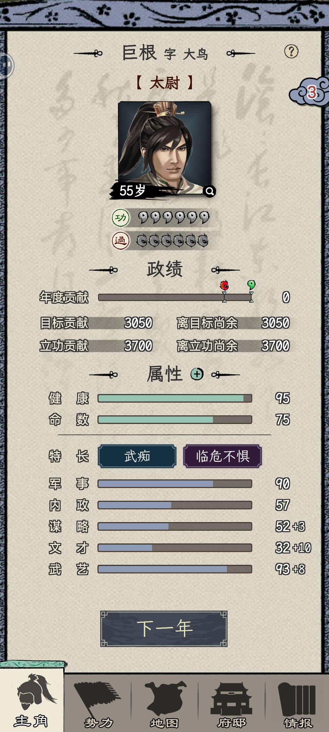 为啥我太尉后,每年都立功但是界面都不显示加功了?