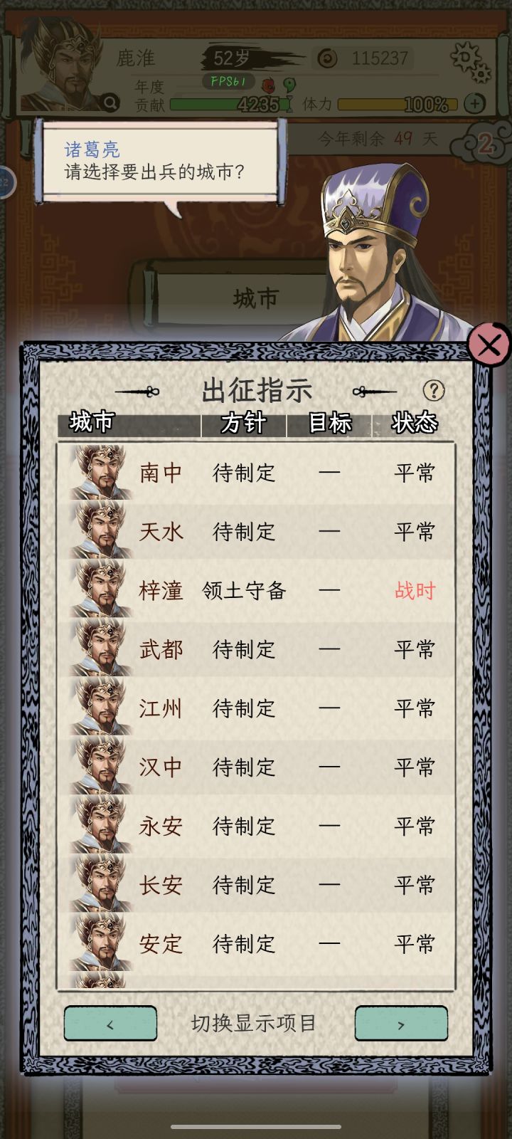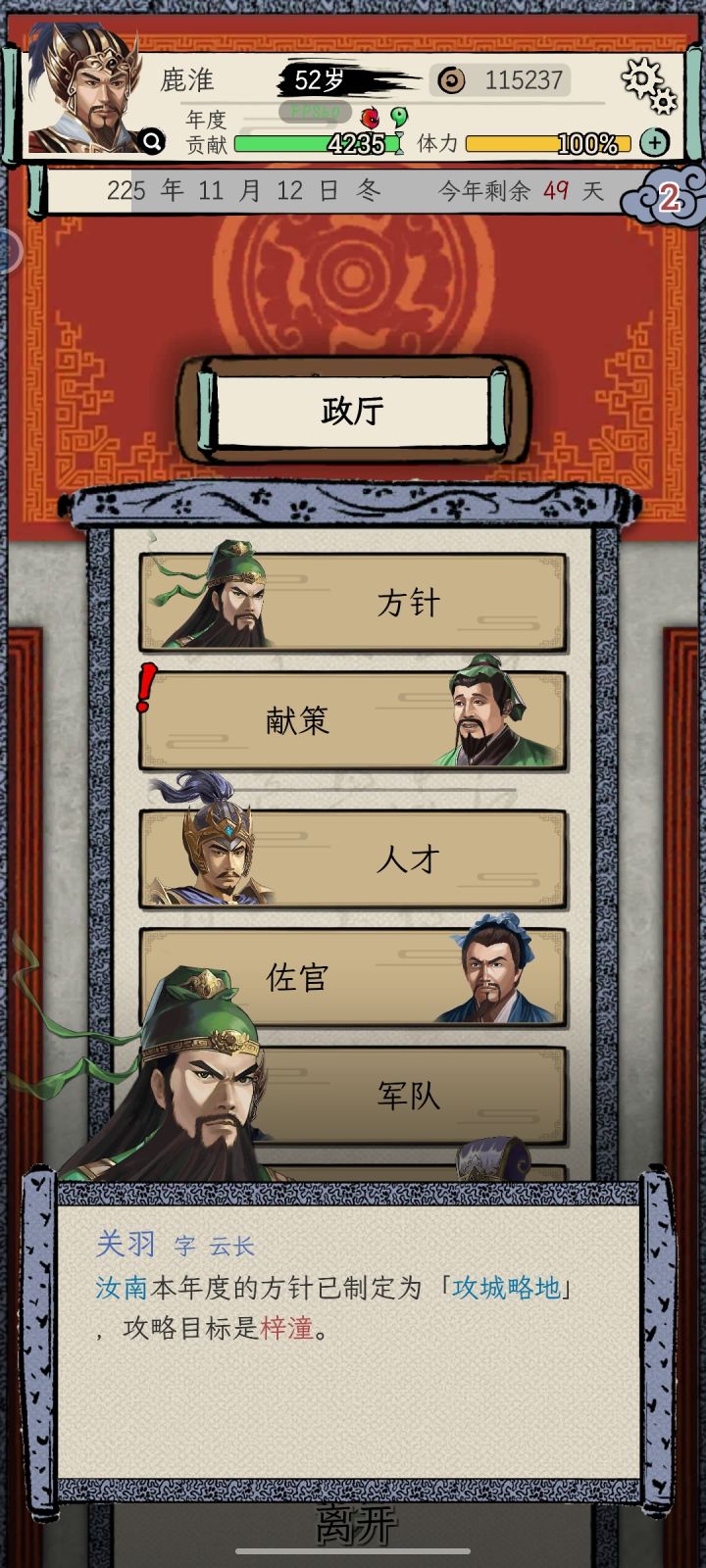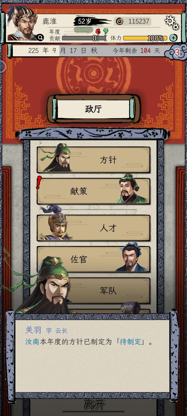 方针这一栏显示待制定,然后做各种献策都会卡住。#bug反馈