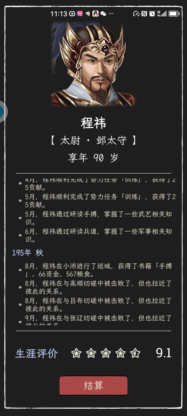 三天打到九十岁的档了,数值基本刷满, 居民评价都是尊崇,技能也有很多,一品宫,功勋点奖励真的少,才1400,希望能加多一点