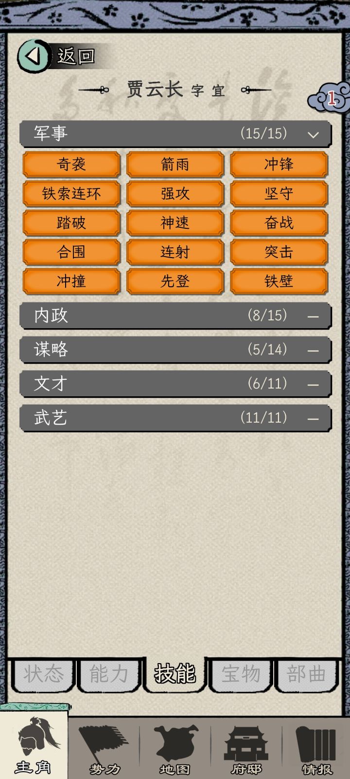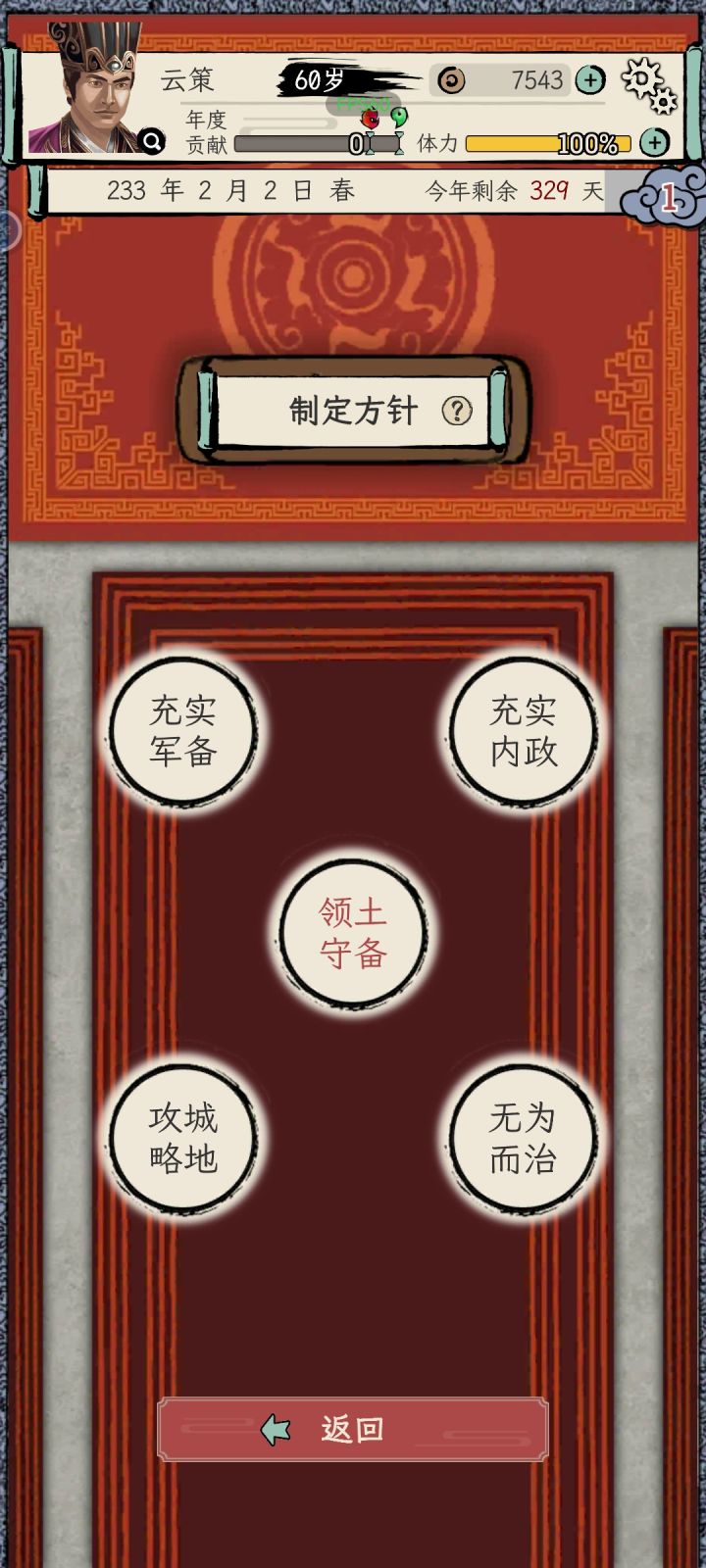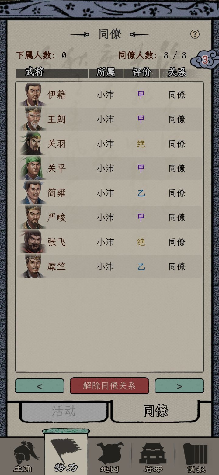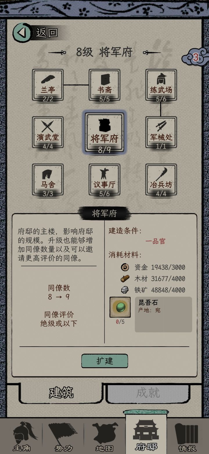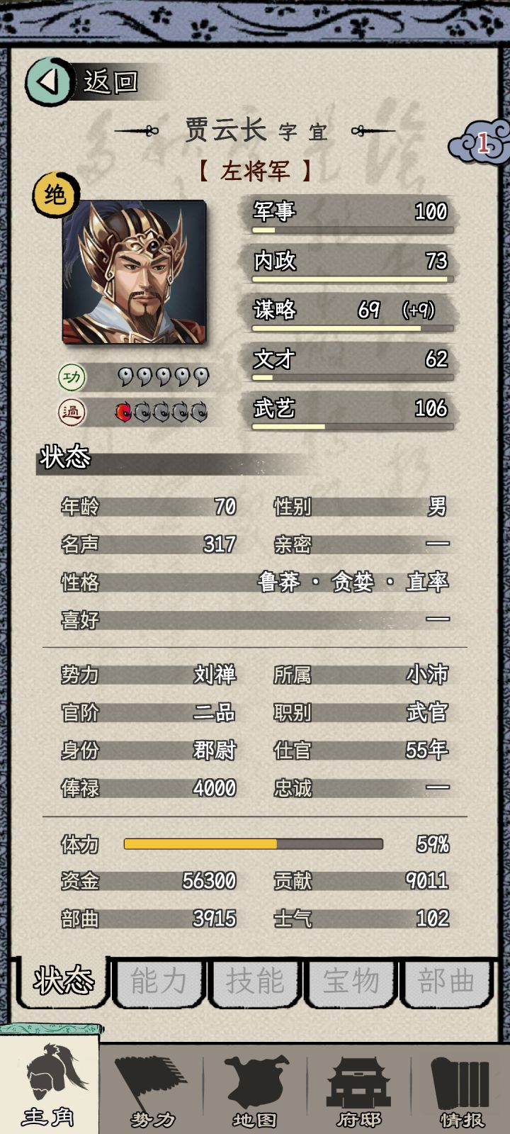 一周目选的刘备势力,苟到70能力也刷起来了,之前做任务可能还是能力不够没法立功升官,现在是不给刷了,都督的任务全是要求必须三个同僚一起并且多次任务不能重复选同一个同僚,但是将军府等级又卡了同僚数,这就导致了没法刷够立功的功勋。三品升二品的时候还好等校尉刷出金丝楠木任务交10个+打2蛮族超额+生产兵装正好可以立功,但是二升一的时候超额完成2个镇压叛乱,立功的贡献也还是差620,而金丝楠木任务只给2