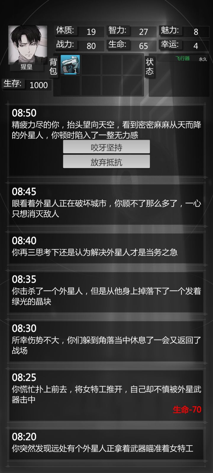 有bug啊,超英世界里有个选择放弃抵抗还是咬牙坚持,选哪个都是一样的,必没啊