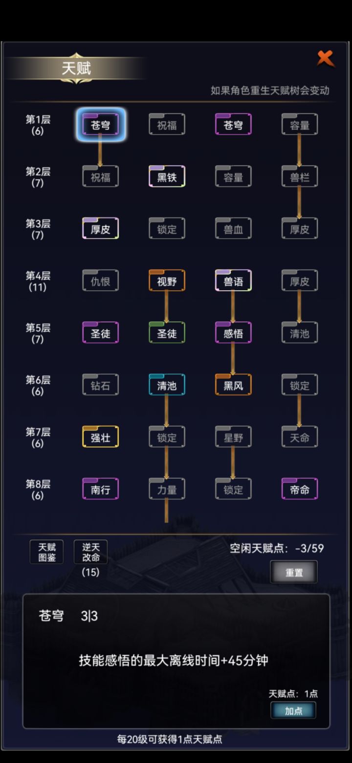 转生以后,等级重置,但是天赋点的上限没变,这时候点加点,空闲天赋点就会变成了负数,之后再升级也不加天赋点了