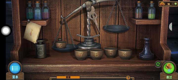 天平8(砝码)=3(砝码)+5(碗),放药水5(碗)=3(砝码)+2(碗),放药水7(碗)=5(碗)+2(碗),放药水7(碗)=3(砝码)+4(碗),放药水6(碗)=2(碗)+4(碗),放药水以此类推,药水随便点,哪个能放放哪个