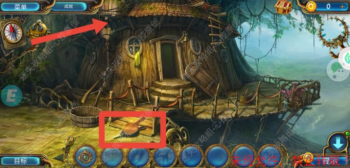 第九章古代森林139.来到书屋外捡起烟囱风箱,让蒂恩把水桶下的木塞拔掉。139140.点击右侧没有做完的竹篮,捡到花园修枝剪。140141.点击右侧的粉色花朵,用花园修枝剪剪掉带刺的藤条得到花瓣。141142.进入树屋内,捡起空锅炉,蘑菇,和椅子。142143.点击右侧的台面,捡起捣杵。143144.点击右侧台面上方的布包,用花园修枝剪剪开,得到绿叶。144145.点击左侧的柜子,将