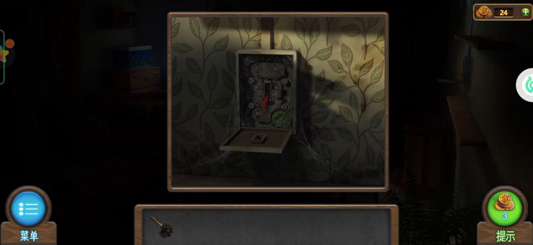 ❶红圈处按顺序点击依次获得道具:①棍子1,②齿轮1,③飞镖1,④钥匙,⑤按钮1,⑥瓶子。❷黄圈处依次点击为后续任务做准备。点击白圈进入场景道具库❶红圈处获得道具:①棍子2,②尺子。❷黄圈处依次点击为后续任务做准备。❸蓝圈处点开使用钥匙,完成一个小游戏后获得道具:①把手,②扳手。返回主场景❶红圈1使用道具把手,将箱子锯开后获得道具:①飞镖2,②按钮2。❷红圈2点开,记住绿点的位置。返