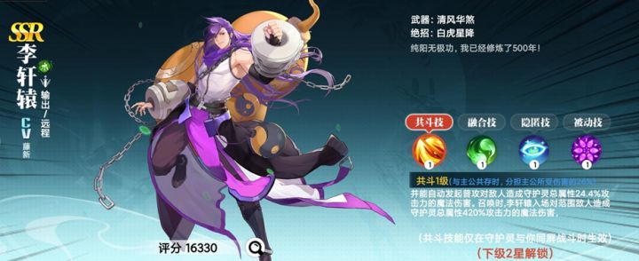 【守护灵资料-SSR级:李轩辕】无论你要去哪,有我一路守护!