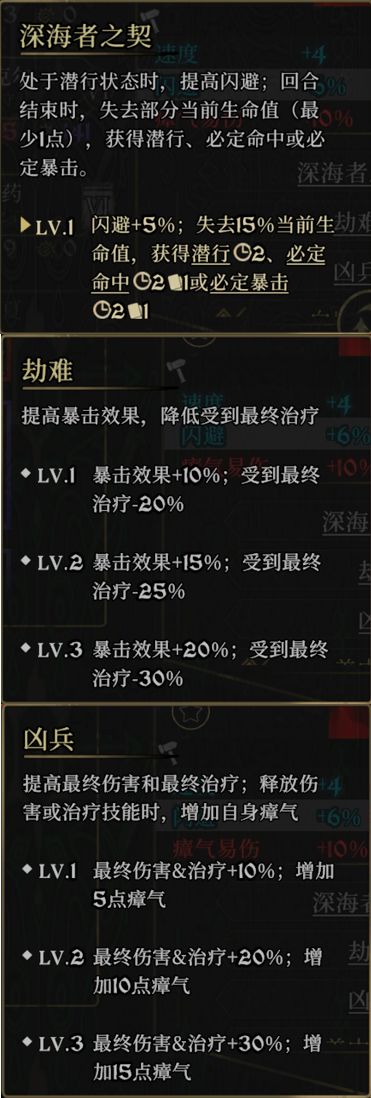 历史改动:【绯红舞裙】闪避+3%;【黄衣法袍】瘴气易伤-15%;【无畏利爪】抵御提升2%【光辉旅途】受到瘴气治疗提升10%;【暴君】命中提升4%;瘴气易伤提升10%【大鹫】生命提升2;最终伤害提升3%;【维利亚舞鞋】速度减少1;【航海望远镜】闪避提升4%;2025-9-10更新【最初之血】- 最终伤害从15%提升到25%,完美打磨后,将提升到35%【先行者】-超越概率从12%