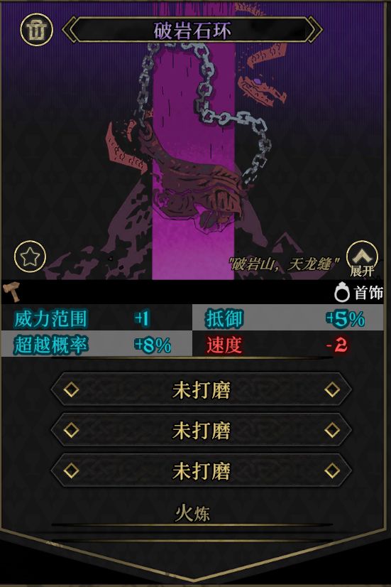 用破岩山天缝的石材制造的石制吊坠/项链。破岩山的石材因此被认为能够对龙造成伤害,被不敬龙神的安尼姆们用来制作饰品。号称可抵御龙的攻击。