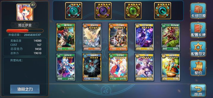相信很多人都知道开服要冲等级,到100级开噩梦,开契约。上一篇文章我已经发了月卡党过噩梦1的攻略。这篇文章给萌新普及一下契约知识。契约通过达到条件触发召唤物卡牌(可以被直接消散),所以一个好的契约需要同时具备好的触发条件和高质量卡牌。契约触发顺序:先发动契约,后上卡,再发动符文。不过可以利用一个小套路发动己方条件的契约,契约是按顺序判定一个发动一个,再判定下一个发动下一个。也就是排在前面的