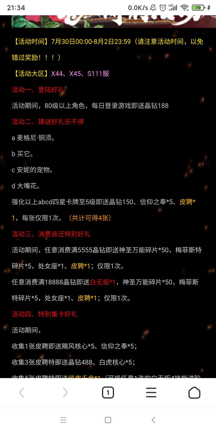 亲爱的卡友,8月月底,抓住夏天的尾巴,传承新服又与大家见面啦!8月27日传承31服蔚海轻风全新开启,各种精彩活动等着大家来参与!让我们一起来开启这段奇幻之旅吧!1. 游戏内活动,有限时和长期的不同活动,详见官网,传送门:2. 新浪微博新服礼包码和新服专属限时活动,可去新浪微博关注魔卡幻想查看哦!3. 想对游戏的卡牌和技能有更深入了解的卡友可去关注魔卡幻想手游微信公众中的小程序-魔卡百科中查询到