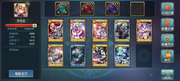 这是我一开始的阵容,技能有两个洗到11次,在打7-1-困难时被爆杀然后我试了一下只用一个五星(没有培养过的血色玫瑰),然后轻松打过了7-1-困难