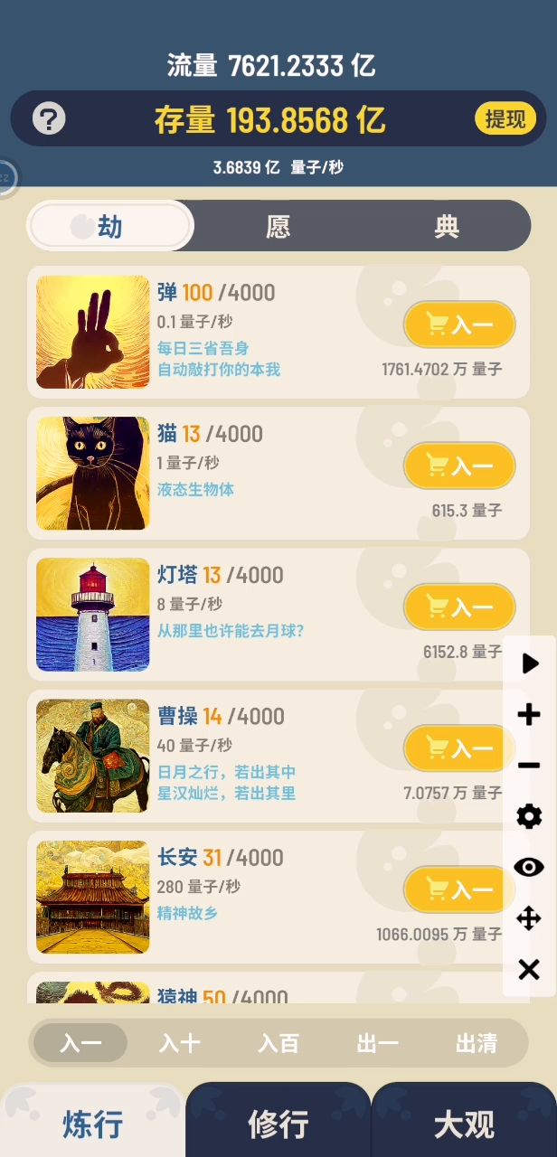 我现在的历世102,转生一直在线的时候点击都没什么问题都是按加成走的,但是下线再上线点击的数值就缩水了,缩水百分之四十四 接近一半,(之前历世100的时候,缩水更是严重,重登之前是1600多w,重登之后660w,缩水百分之五十九)玩过的都知道这游戏量子的来源是每几分钟的祝福,而点击是祝福的重点,可是这样的bug绝对是砍掉一半的收益,现在这个样子玩的没意义,啥时候修复了再来吧