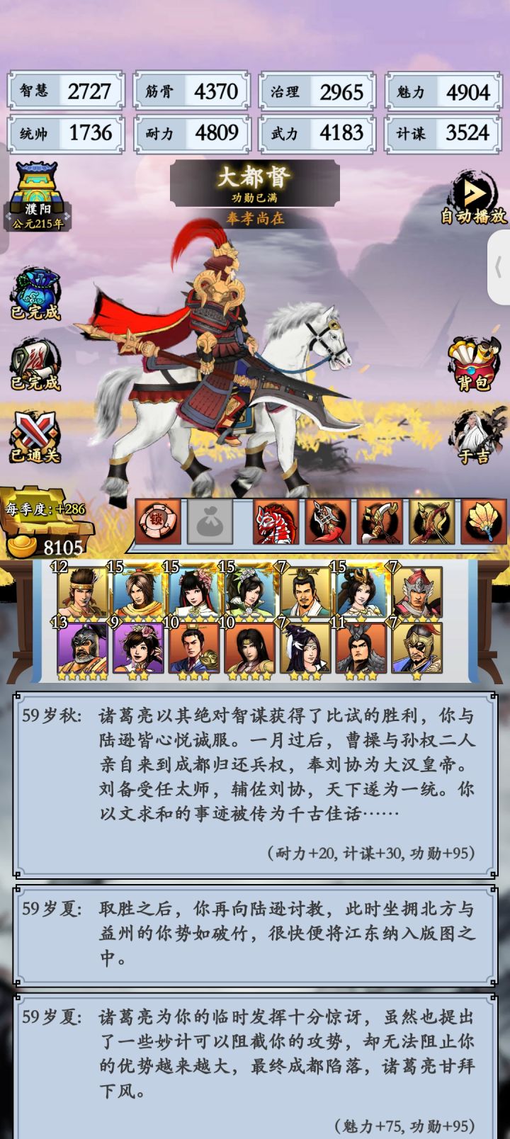 这里文定三国,是我赢了,结果是显示诸葛亮,还有之前奇袭乌巢,经历了两次。