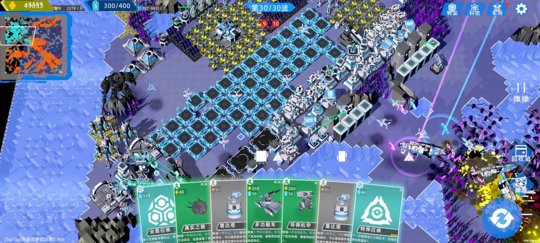 太卡了,卡成PPT了,视频是拆建筑加删卡后才没那么卡,在60波把建筑卡,军队卡,战术卡最顶级的都解锁了,但是军队一多就掉帧,打完一个阶段等上4分钟才下一波实际要等上两三倍时间(建议作者缩短时间),删卡金币永久成倍增加到后面很难删的起。最后祝作者大卖,游戏还是很好玩的。