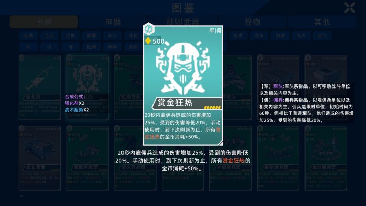 V1.1011.修复了加点扩张不生效的bug。2.优化了卡牌触发逻辑。3.修复了部分应该乘法叠加的增伤和减伤科技实际效果为加法的bug。4.将【撼地佣兵团】多功能车和重炮蜘蛛的数量减为2。5.新增了【神盾佣兵团】及其合成。6.在图鉴的其他类别里将所有单位都显示出来了。7.修复了一个可能导致闪退的bug。本次更新补偿3w钻石,有存档的玩家登录即发送到存档中,记得及时上传云存档,避免意