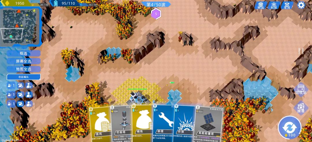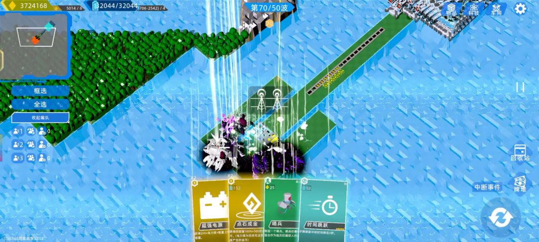 1.规则武器选择:有钱任性,超级电力,无限供应,超级加倍,空间叠加。 2.前五波除了一个机枪,不造任何防御建筑,也不选任何建筑卡牌 3.出来的卡牌,只选金币,挖矿机,发电机,其余的全不要,优先挖矿机和发电机,金币卡优先级最后。