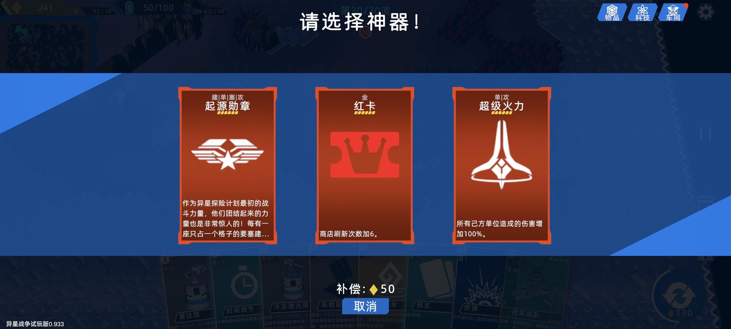 那个科技红点就太碍眼了都不够钱你亮什么红点啊(恼)还有刚开始没引导,都忘了哪个是能合成的了还没有的建筑、牌感觉搞成灰色可以合成的加上轻微的闪光图片特效,已经有了的就是正常彩色+边角数字标识。要不是玩过上一个版本真的会很蒙圈。地形编辑疑似有bug,只要操作够快就可以直接拉出一条线(钱不够也能强行拉出一条长线)通常误触的时候会触发,很折磨人。然后误触改变了地形也没有回退,简直是强迫症的