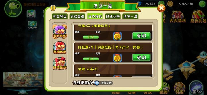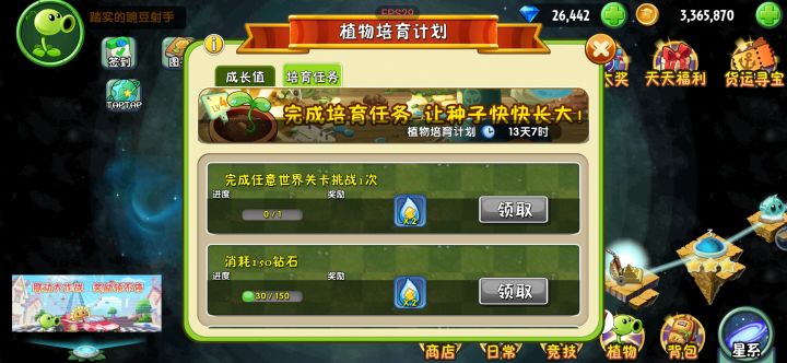 植物培育计划根本完成不了,可以看到清凉一夏中植物获得20个植物碎片已完成,创意庭院任务也是完成的,还有埃及世界里消灭20个僵尸也是完成的!但是到植物培育计划任务中进度基本没动,根本没办法完成!
