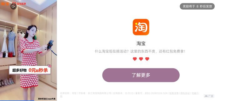 每次刷到淘宝这广告总会卡在第八秒,然后就不动了!每次都是清后台退出烦死了