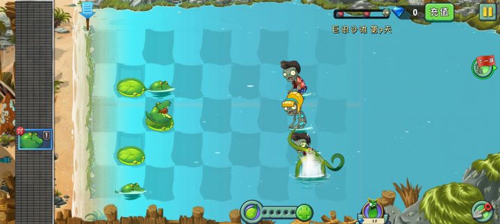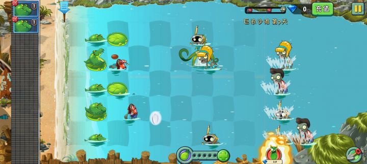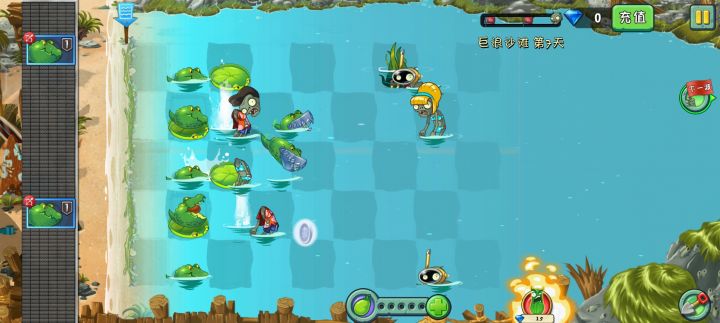 巨浪沙滩 第7天我把缠绕水草放僵尸的位置上,它居然变到下一排去了,你说这换个位置能使用吧就算了,但它不行。要是一定需要它才能通关,那估计不行了,完全用不上。黑暗时代 第20天主要是这关的狼人僵尸,我反反复复打了好几次,也氪了买不下5个黄瓜,还是没灭掉,全部都升级到最高的火龙草,还是没过,狼人僵尸掉血真的慢,不知道是不是卡bug了#攻略