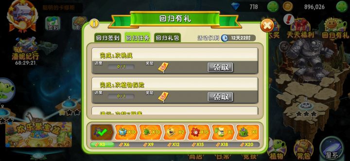 好好久没玩了,以前花园战争里面获得的植物都没了,无语