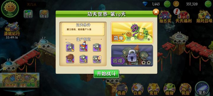 回忆之旅简单第五关,一进去就是这样,也不让我选植物,啥也没有,一脸懵