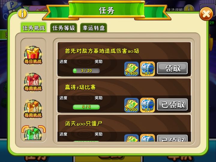 第3周任务这块有bug,我打了不止6场首先对敌方基地造成伤害,但是没有加次数,希望有开发的看到可以处理下,要不然这周任务一直都是3次