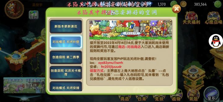 对战关闭补偿兑换码
