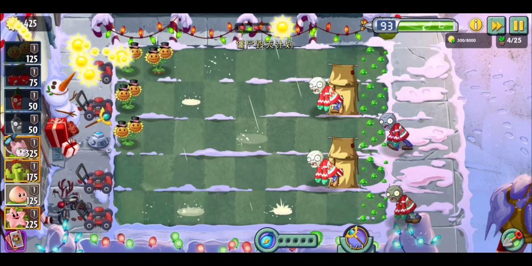 这关的难点就是开局不久的投罐车,这我推荐用星星果。第一波拿下第一颗能量豆,等裂缝出现,有投罐车白色阴影显现就喂豆,他出来就可以吃满伤害,把握不好被碾死,可以套治愈 (没有星星果或完成1代任务也能仙人掌,但一个豆肯定打不死,车必定投一罐,有一定风险,仙人掌打法,要把灰烬植物留着,或直接种芦苇,主要是防鸡偷家),现在爆炸坚果无限炸也不能用了 后三排种向日葵完成8000阳光任务,打的时候也多看一下。第一次帐篷就会出鸡,由于前期火力不足,没多少阳光时间种猫,而且就算种了,刺也有点跟不上,容易出事,易丢车,提前在24路种仙人掌 前面放磁盾就别防御了,易被顶飞,但没有损失任务也不用太拘束。后面机甲僵尸多,还是带点灰烬植物好些,打的还更快,等到后面3旗过了,磁盾僵尸的时候再速刷,前面巨人是真刷不动,至卡波等