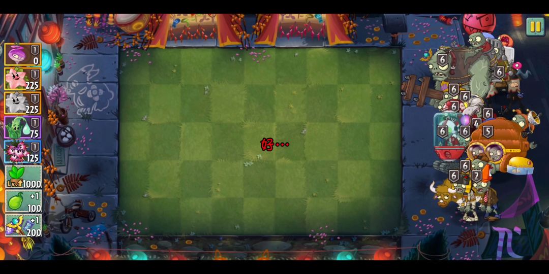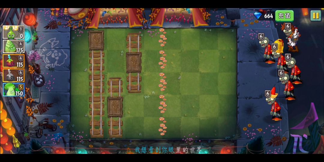 开局猫尾草伤害不够,在第4路魅惑一个僵尸就可以了,剩下的看视频吧。