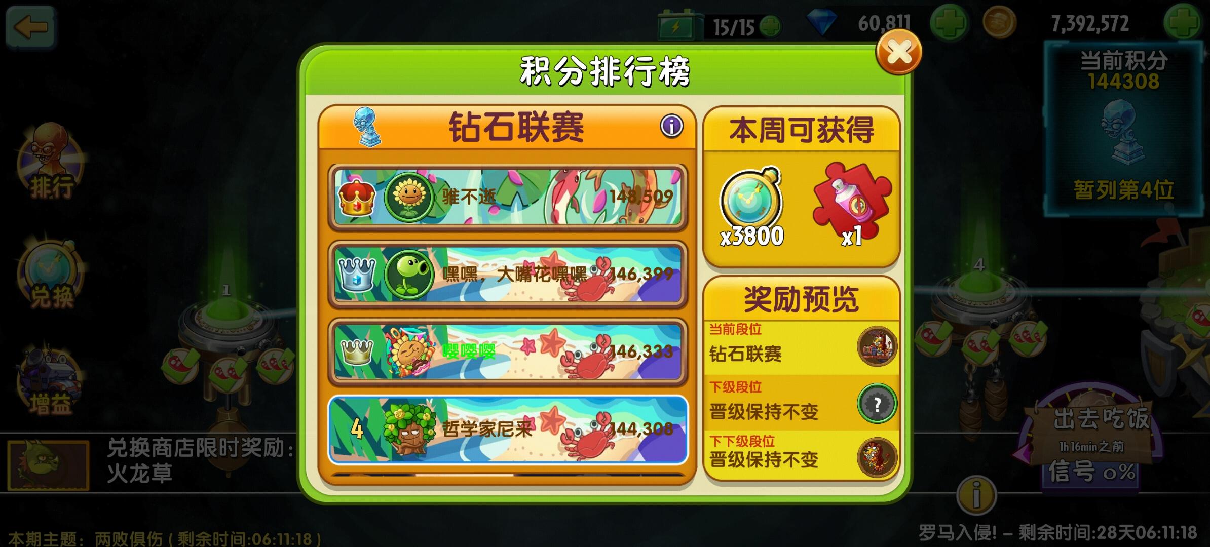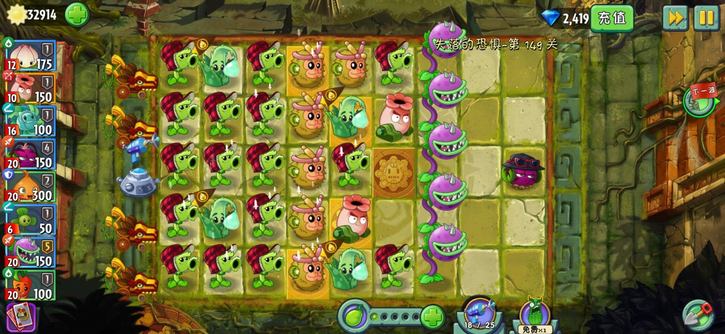 玩植物大战僵尸2以来第一次无尽通关,额哭死。阵容如图,需要五阶原始豌豆,三阶及以上猕猴桃,二阶及以上芦荟医师,四阶及以上魔音甜菜,一阶及以上熊果臼炮。之所以说半平民是因为我玩的比较早,pvp模式关闭后,猕猴桃比较难升级。