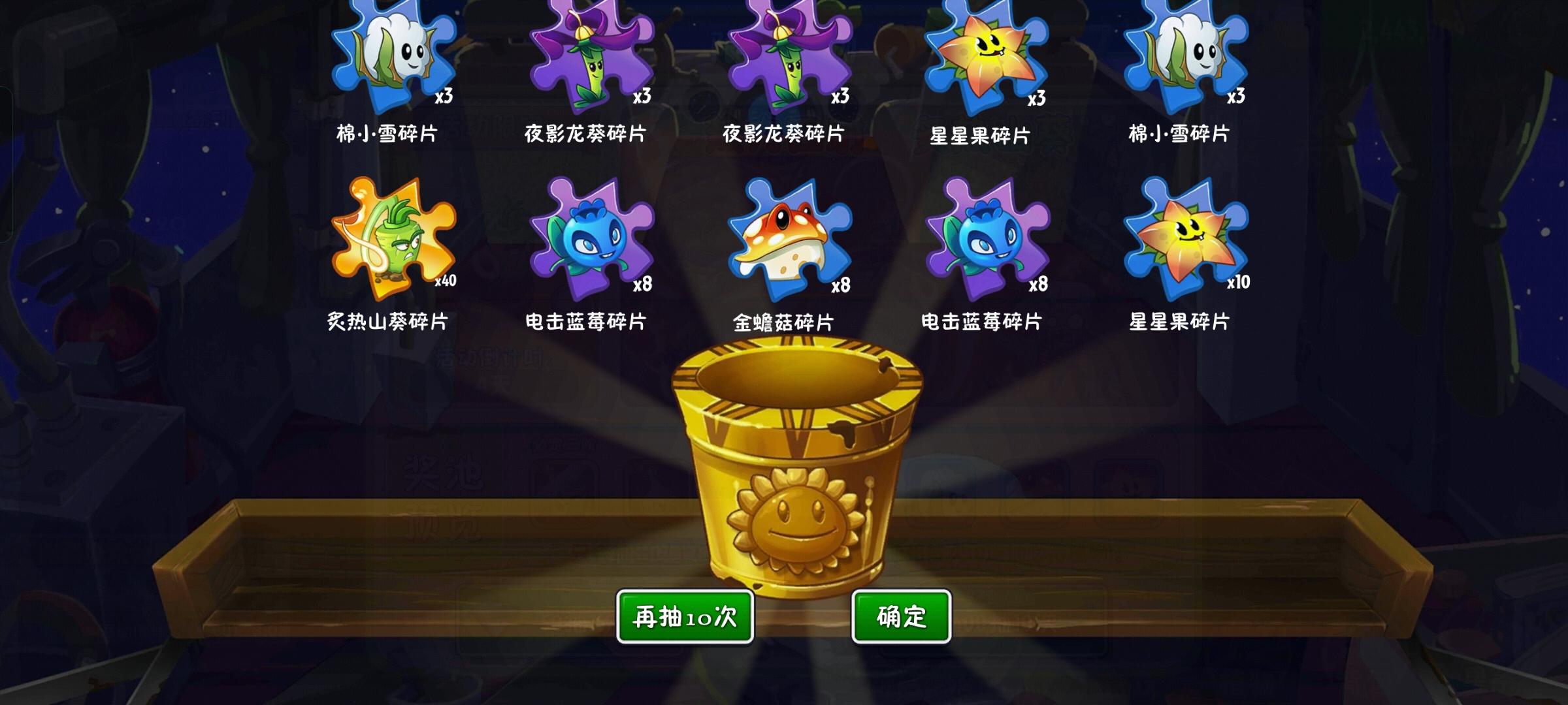 无尽已经懒得打了,基本打一关就不打了,等着领低保,无尽植物已经全满阶了,不知道拓维会不会更新点新的植物,现在无尽币也就买买金肥料了。话说拓维啥时候把转基因的指定颜色碎片转基因完善,还有我背包里面的挂机太多了,加点空间罢,或者把挂机一键合成或一键卖出这个功能搞出来