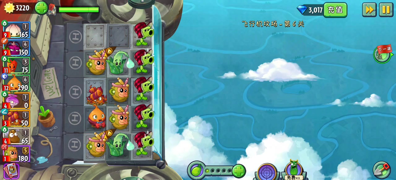对方没带盗贼和矿工,这种情况是最适合使用电能藤蔓单原坚阵的,然而不巧的是我正在使用的是火龙树根阵…… 其实还有一点就是前期的速攻消耗了我太多阳光了,要是前期稳定发育的话说不定还有些机会