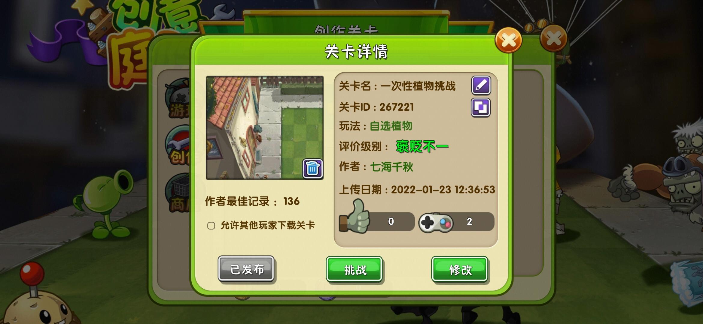 庭院关卡ID:321406。帮忙试玩儿,给个赞 谢谢大家了