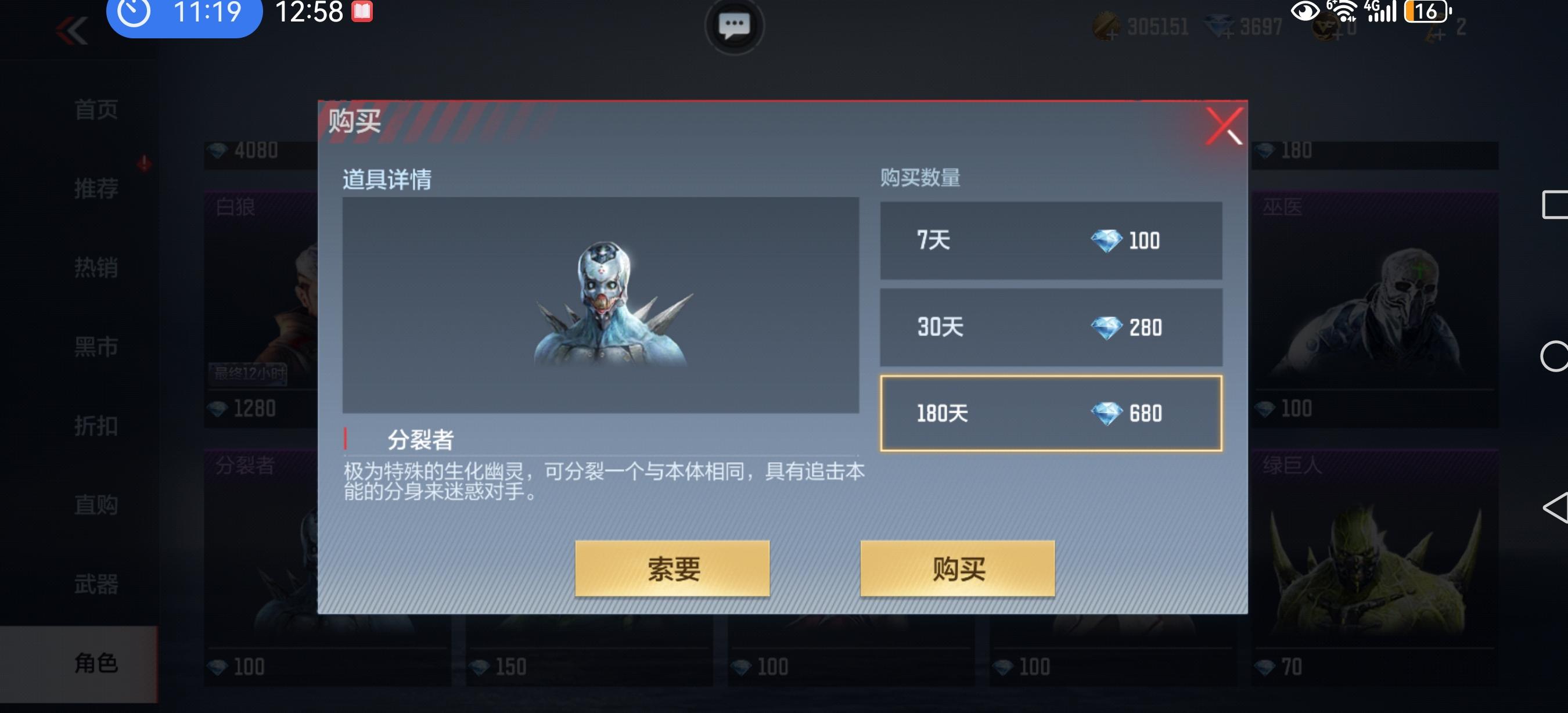 商城购买变异体最长时间只有180天,求你能不能设置钻石买永久的变异体,凭什么只有人有永久角色,求你修改吧!🙏