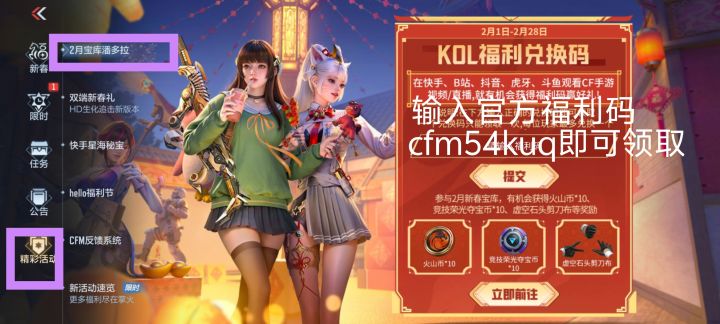 cfm宝库 小程 序最欧口 令码cfm54kuq注意:每日限额8名!!错过等明天认准kz战队内部口码cfm54kuq满一个月未登录玩家和新注册的玩家高概率获得永久M4A1-游骑兵M4A1-王势M4A1-仲达AK47-奉先cop雷霆王者M4A1-星象#穿越火线枪战王者 #穿越火线枪战王者攻略 M4A1-竞界荣光AK47元让9999钻石